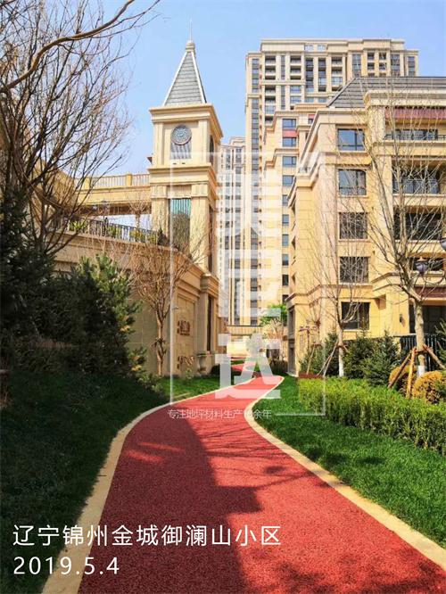 遼寧錦州金城御瀾山小區(qū)位于松山新區(qū)松山新區(qū)光彩立交橋南,施工面積6000余平米,地面主要為紅色,透水混凝土厚度13公分,
